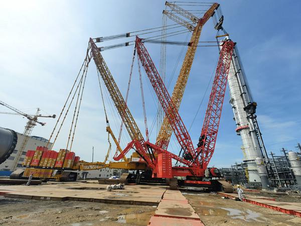 中國(guó)石化新聞網(wǎng)訊 國(guó)慶期間,煉化工程集團(tuán)起運(yùn)公司海南項(xiàng)目全體員工奮戰(zhàn)一線,10月4日,在4000噸履帶吊和900噸履帶吊配合下,協(xié)助安裝單位對(duì)乙烯塔進(jìn)行“穿衣戴帽”。這是4000噸履帶吊在海南項(xiàng)目的第三次“亮劍”。10月7日,直徑6米、高度89.91米、重量711噸的乙烯塔,歷時(shí)3小時(shí),順利完成吊裝作業(yè)。(趙宏飛)