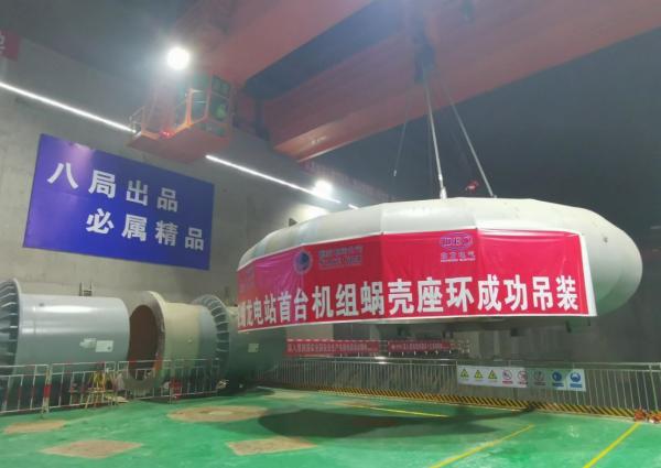 中國基建報訊(撰文|劉治溶 攝影|劉治溶、劉婷婷)5月12日上午9點41分,由中國水電八局參建的重慶蟠龍抽水蓄能電站首臺機組蝸殼座環(huán)順利完成吊裝,迎來了電站機組設(shè)備安裝的重要里程碑,標(biāo)志著重慶蟠龍抽水蓄能電站正式進入機組埋件安裝高峰期。