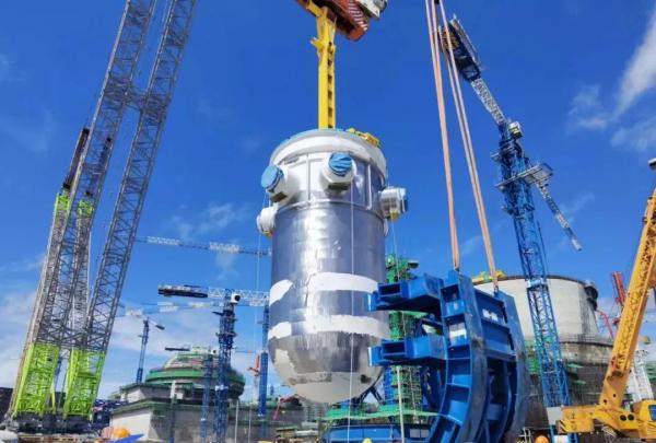 8月9日,我國(guó)自主三代核電華龍一號(hào)批量化工程——中核集團(tuán)漳州核電2號(hào)機(jī)組反應(yīng)堆壓力容器順利吊裝就位。這是該機(jī)組繼三臺(tái)蒸汽發(fā)生器吊裝成功之后,主設(shè)備預(yù)引入工作再次取得的重大進(jìn)展,為后續(xù)內(nèi)穹頂?shù)跹b及主管道焊接創(chuàng)造了先決條件。