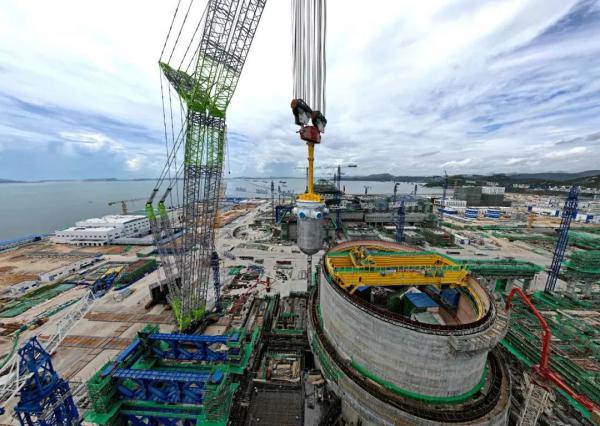 8月9日,我國自主三代核電華龍一號批量化工程——中核集團(tuán)漳州核電2號機(jī)組反應(yīng)堆壓力容器順利吊裝就位。這是該機(jī)組繼三臺(tái)蒸汽發(fā)生器吊裝成功之后,主設(shè)備預(yù)引入工作再次取得的重大進(jìn)展,為后續(xù)內(nèi)穹頂?shù)跹b及主管道焊接創(chuàng)造了先決條件。