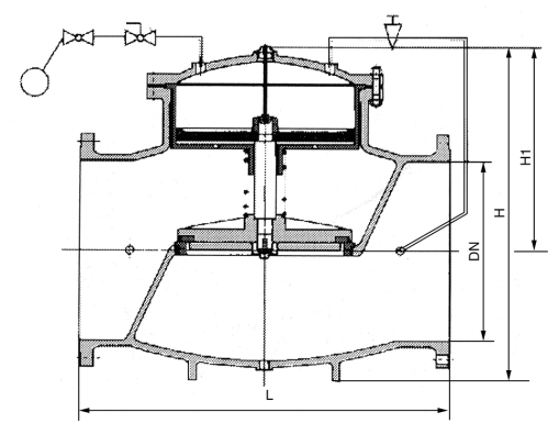 該閥主要安裝于水池或水塔的進(jìn)口處,當(dāng)水位達(dá)到設(shè)定高度時,主閥由浮球?qū)чy控制關(guān)閉進(jìn)水口停止供水、當(dāng)水位下降后,主閥由浮球?qū)чy開關(guān)控制打開進(jìn)水口向水池或水塔供水,實(shí)現(xiàn)自動補(bǔ)水。