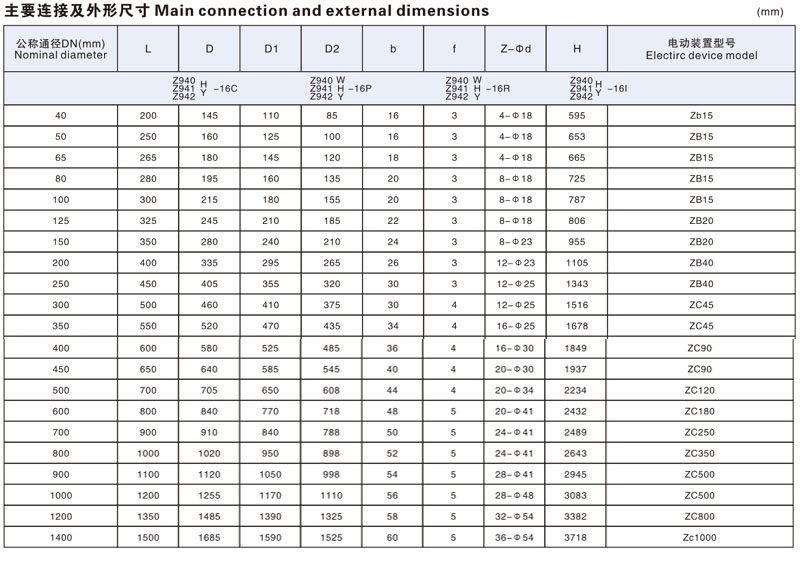 電動(dòng)、法蘭連接、明桿楔式剛性單閘板,閥座密封面材料為合金鋼(Z941H-16C~63 Z941Y-16C~63 Z941Y-16P~63P Z941Y-16R~63R Z941Y-16I~63I)、鉻鎳鈦不銹鋼(Z941W-16P~63P)、鉻鎳鉬鈦不銹鋼(Z941W-16R~63R)、鉻鉬鋼(Z941W-16I~63I),公稱(chēng)壓力 PN16~PN63,閥體材料為碳素鋼(Z941H-16C~63 Z941Y-16C~63)、鉻鎳鈦不銹鋼(Z941Y-16P~63P Z941W-16P~63P)、鉻鎳鉬鈦不銹鋼(Z941Y-16R~63R Z941W-16R~63R)、鉻鉬合金鋼(Z941Y-16I~63I Z941W-16I~63I)的閘閥。